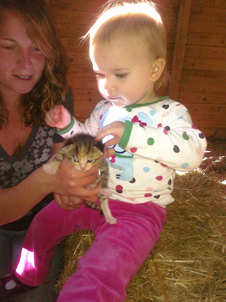 They're living in the middle of some hay bales up in the loft of the barn. Still so tiny and cute!